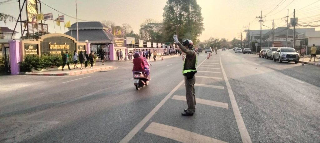 อำนวยความสะดวกการจราจร หน้าโรงเรียนในพื้นที่ 21 กุมภาพันธ์ 2568 โดย admin / การปฏิบัติหน้าที่ของตำรวจ,การปฏิบัติหน้าที่ของตำรวจ,งานจราจร วันที่ 21 กุมภาพันธ์ 2568 เวลา 07.00 น. ภายใต้การอำนวยการของ พ.ต.อ.ธีรวุฒิ วงศาอ้วน ผกก.สภ.กมลาไสย พ.ต.ท.นครินทร์ ศรีอัครวิเนต รอง ผกก.ป.สภ.กมลาไสย พ.ต.ท.มงคล เจียงภูเขียว สวป.ฯ มอบหมายให้ ร.ต.อ.ธวัช ดอนกระสินธุ์ รอง สว.สส.สภ.กมลาไสย/ปฏิบัติหน้าที่ร้อยเวร 60 ออกอำนวยความสะดวกการจราจรในเขตพื้นที่ต่อไป FacebookFacebookXXLINELine