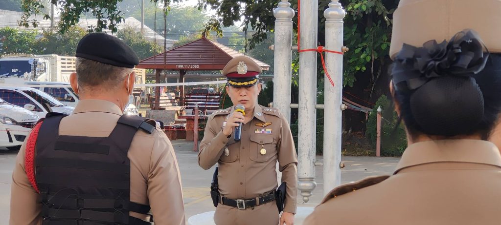 เคารพธงชาติประจำสัปดาห์ 28 พฤศจิกายน 2566 โดย admin / การปฏิบัติหน้าที่ของตำรวจ,ประชาสัมพันธ์กิจกรรมของหน่วย วันที่ 28 พ.ย.2566 เวลา 08.00 น. พ.ต.อ.ธีรวุฒิ วงศาอ้วน ผกก.สภ.กมลาไสย มอบหมายให้พ.ต.ท.มงคล เจียงภูเขียว สวป.ฯ และ พ.ต.ท.ภูษิต โคตรแสงอ่อน สว.อก.ฯ ให้ร.ต.อ.วารุฒ ภูเบ้าทอง รอง สวป.ฯ ร้อยเวร 20 เรียกแถวข้าราชการตำรวจสภ.กมลาไสย สายตรวจรถยนต์ ร้อยเวร 20 สายตรวจรถจักรยานยนต์ผลัดเก่าใหม่ และงานธุรการงานต่างๆ เข้าแถวเคารพธงชาติ สวดมนต์ไหว้พระ กล่าวคำปฏิญาณ อุดมคติ ร้องเพลงสรรเสริญพระบารมี ชี้แจงข้อราชการ ก่อนปล่อย เพื่อออกปฏิบัติหน้าที่ต่อไป FacebookFacebookXXLINELine