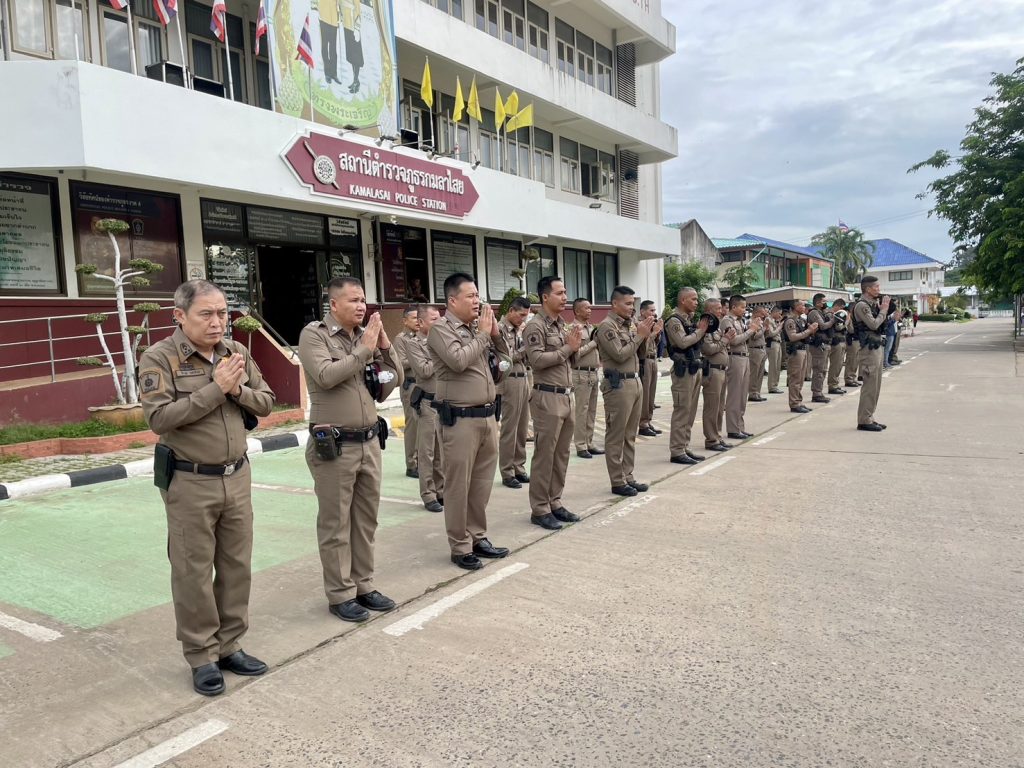 เคารพธงชาติประจำสัปดาห์ 5 กรกฎาคม 2567 โดย admin / ข่าวภารกิจผู้บังคับบัญชา,ประชาสัมพันธ์กิจกรรมของหน่วย วันที่ 2 กรกฎาคม 2567 เวลา 08.00 น. พ.ต.อ.ธีรวุฒิ วงศาอ้วน ผกก.สภ.กมลาไสย พ.ต.ท.ประพนธ์ ภูจอมนิล รอง ผกก.(สอบสวน)ฯ พ.ต.ท.นครินทร์ ศรีอัครวิเนต รอง ผกก.ป.ฯ พ.ต.ท.ถาวร ยอดยรรยง รอง ผกก.สส.ฯ พ.ต.ท.มงคล เจียงภูเขียว สวป.ฯ พ.ต.ท.มณี สาระขันธ์ สว.(สอบสวน)ฯ พ.ต.ท.ภูษิต โคตรแสงอ่อน สว.อก.ฯ พ.ต.ท.อภิสิทธิ์ พลเตชะ สว.(สอบสวน)ฯ พร้อมด้วยข้าราชการตำรวจ สภ.กมลาไสย แสดงความเคารพธงชาติ ร้องเพลงสรรเสริญพระบารมี สวดมนต์ไหว้พระ กล่าวคำสัตย์ปฏิญาณ อุดมคติตำรวจ ตรวจการแต่งกาย ทรงผม อุปกรณ์เครื่องเเต่งกาย ชี้แจงข้อราชการต่างๆ แล้วปล่อยแถวสายตรวจออกปฏิบัติหน้าที่ต่อไป ณ ลานหน้าที่ทำการ สภ.กมลาไสย FacebookFacebookXXLINELine