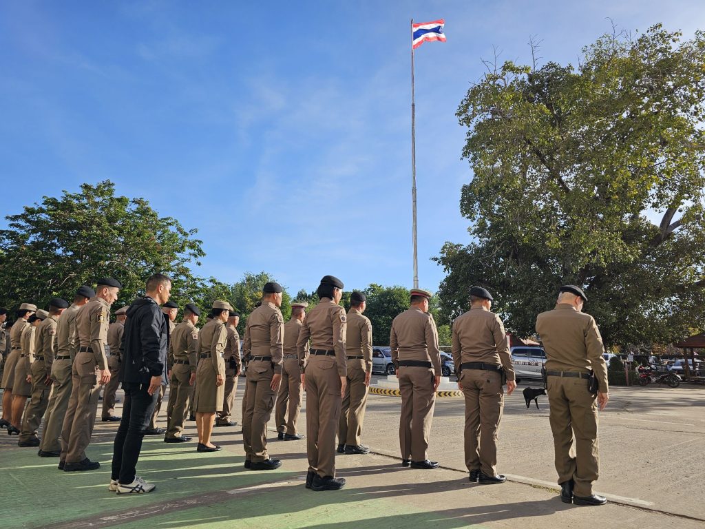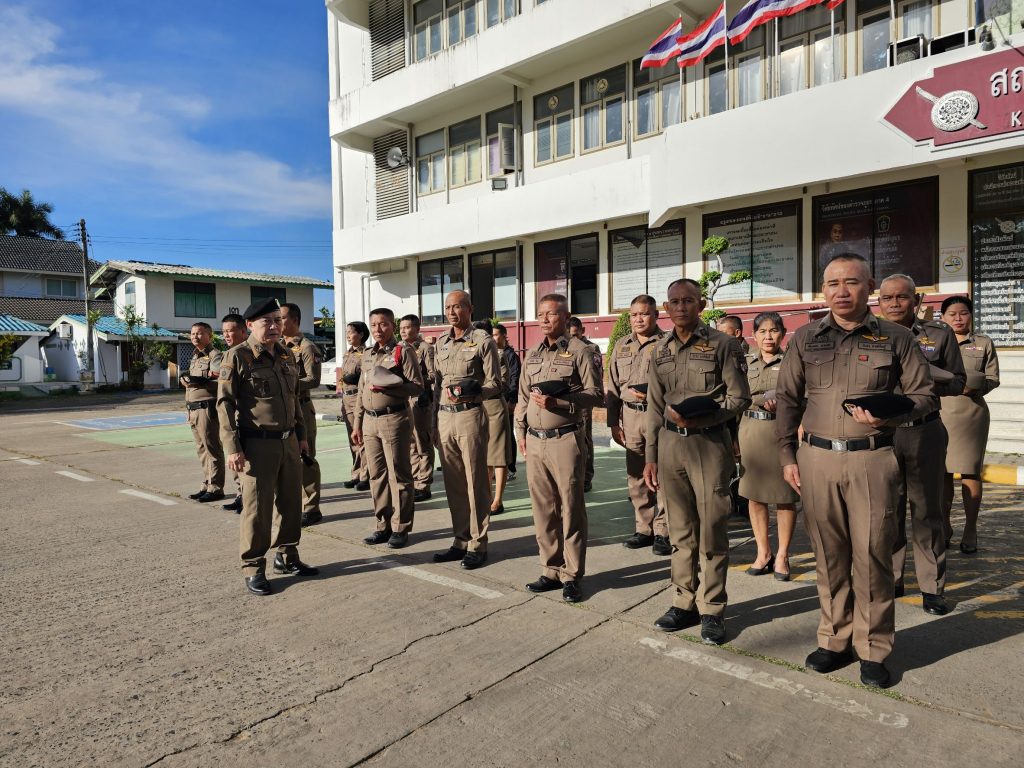 เคารพธงชาติประจำสัปดาห์ 26 พฤศจิกายน 2567 โดย admin / ข่าวภารกิจผู้บังคับบัญชา,ประชาสัมพันธ์กิจกรรมของหน่วย วันที่ 26 พฤศจิกายน 2567 เวลา 08.00 น.พ.ต.อ.ธีรวุฒิ วงศาอ้วน ผกก.สภ.กมลาไสย พ.ต.ท.ประพนธ์ ภูจอมนิล รอง ผกก.(สอบสวน)ฯ พ.ต.ท.นครินทร์ ศรีอัครวิเนต รอง ผกก.ป.ฯ พ.ต.ท.ถาวร ยอดยรรยง รอง ผกก.สส.ฯพ.ต.ท.มงคล เจียงภูเขียว สวป.ฯพ.ต.ต.อมร เดชศรี สว.สส.ฯพ.ต.ต.หญิง อรพรรณ ศรีนวลอ่อน สวป.(ชส.)ฯพร้อมด้วยข้าราชการตำรวจ ร่วมแสดงความเคารพธงชาติ ร้องเพลงสรรเสริญพระบารมี สวดมนต์ไหว้พระ กล่าวคำสัตย์ปฏิญาณ อุดมคติตำรวจ ตรวจการแต่งกาย ทรงผม อุปกรณ์เครื่องเเต่งกาย ชี้แจงข้อราชการต่างๆ แล้วปล่อยแถวสายตรวจออกปฏิบัติหน้าที่ต่อไป ลานหน้าที่ทำการ สภ.กมลาไสย FacebookFacebookXXLINELine
