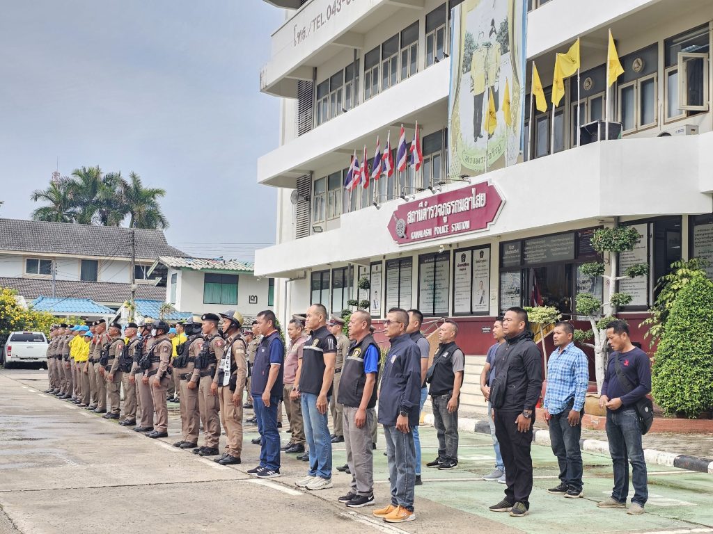 เคารพธงชาติประจำสัปดาห์ 29 เมษายน 2568 โดย admin / การปฏิบัติหน้าที่ของตำรวจ,ข่าวภารกิจผู้บังคับบัญชา,ประชาสัมพันธ์กิจกรรมของหน่วย วันที่ 29 เมษายน 2568 เวลา 08.00 น.พ.ต.อ.ธีรวุฒิ วงศาอ้วน ผกก.สภ.กมลาไสย พ.ต.ท.ถาวร ยอดยรรยง รอง ผกก.สส.ฯ พ.ต.ท.จิตติพร แสนพันดร รอง ผกก.ป.ฯ พ.ต.ท.มงคล เจียงภูเขียว สวป.ฯ พ.ต.ท.ภูษิต โคตรแสงอ่อน สว.อก.ฯ พ.ต.ต.หญิง อรพรรณ ศรีนวลอ่อน สวป.(ชส.)ฯพร้อมด้วยข้าราชการตำรวจ สภ.กมลาไสย ร่วมแสดงความเคารพธงชาติ ร้องเพลงสรรเสริญพระบารมี สวดมนต์ไหว้พระ กล่าวคำสัตย์ปฏิญาณ อุดมคติตำรวจ ตรวจการแต่งกาย ทรงผม อุปกรณ์เครื่องเเต่งกาย ชี้แจงข้อราชการต่างๆ แล้วปล่อยแถวสายตรวจออกปฏิบัติหน้าที่ต่อไป ลานหน้าที่ทำการ สภ.กมลาไสย FacebookFacebookXXLINELine