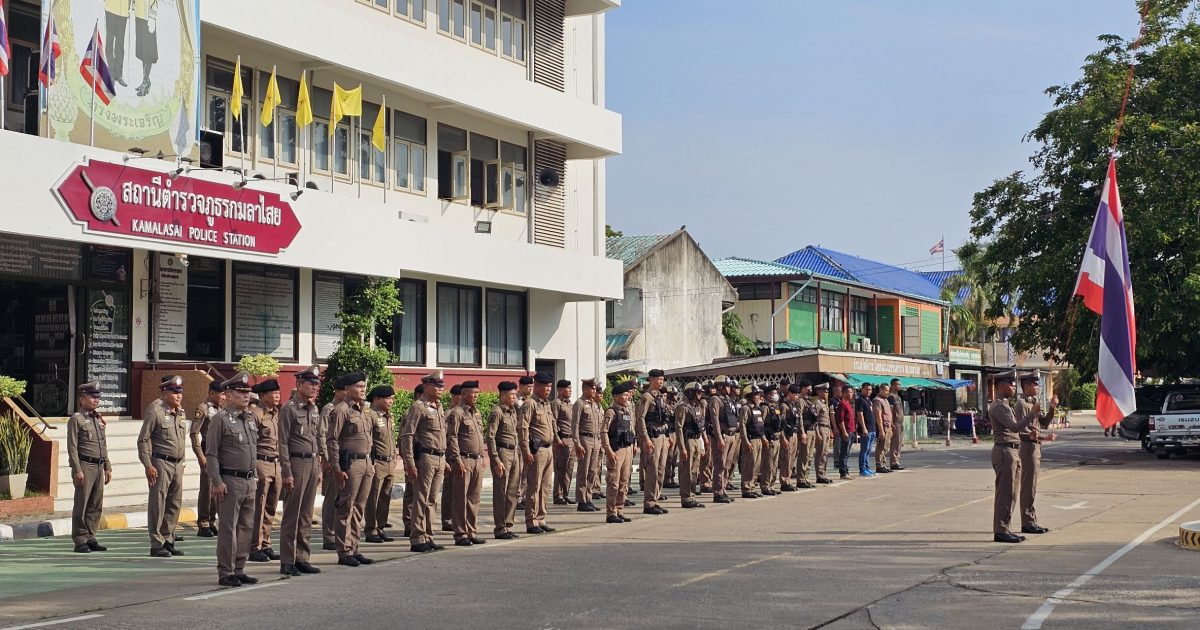เคารพธงชาติประจำสัปดาห์ 20 พฤษภาคม 2568 โดย admin / การปฏิบัติหน้าที่ของตำรวจ,ข่าวภารกิจผู้บังคับบัญชา วันที่ 20 พฤษภาคม 2568 เวลา 08.00 น.พ.ต.อ.ธีรวุฒิ วงศาอ้วน ผกก.สภ.กมลาไสย พ.ต.ท.จิตติพร แสนพันดร รอง ผกก.ป.ฯ พ.ต.ท.มงคล เจียงภูเขียว สวป.ฯ พ.ต.ท.อภิสิทธิ์ พลเตชะ สว.(สอบสวน)ฯ พ.ต.ท.ภูษิต โคตรแสงอ่อน สว.อก.ฯพร้อมด้วยข้าราชการตำรวจ สภ.กมลาไสย และนักเรียนนายสิบตำรวจฝึกงาน ร่วมแสดงความเคารพธงชาติ ร้องเพลงสรรเสริญพระบารมี สวดมนต์ไหว้พระ กล่าวคำสัตย์ปฏิญาณ อุดมคติตำรวจ ตรวจการแต่งกาย ทรงผม อุปกรณ์เครื่องเเต่งกาย ชี้แจงข้อราชการต่างๆ แล้วปล่อยแถวสายตรวจออกปฏิบัติหน้าที่ต่อไป ลานหน้าที่ทำการ สภ.กมลาไสย FacebookFacebookXXLINELine