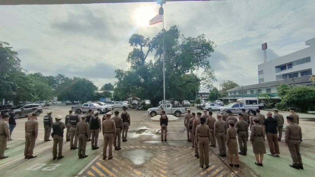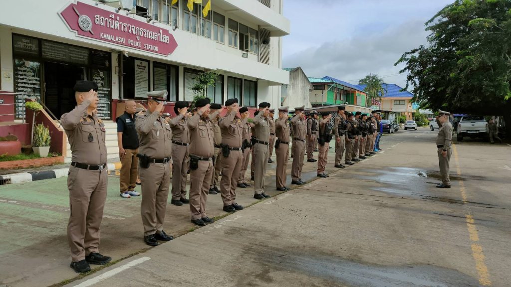 เคารพธงชาติประจำสัปดาห์ 9 กันยายน 2568 โดย kasai policeman / ข่าวภารกิจผู้บังคับบัญชา,ประชาสัมพันธ์กิจกรรมของหน่วย วันที่ 9 กันยายน 2568 เวลา 08.00 น. พ.ต.อ.ธีรวุฒิ วงศาอ้วน ผกก.สภ.กมลาไสย มอบหมายให้ พ.ต.ท.ประพนธ์ ภูจอมนิล รอง ผกก.(สอบสวน)ฯ พ.ต.ท.จิตติพร แสนพันดร รอง ผกก.ป.ฯ พ.ต.ท.ถาวร ยอดยรรยง รอง ผกก.สส.ฯ พ.ต.ท.มงคล เจียงภูเขียวสวป.ฯ พ.ต.ท.ภูษิต โคตรแสงอ่อน สว.อก.ฯพ.ต.ท.วีระชาติ คำเพราะ สว.สส.ฯ พ.ต.ต.หญิง อรพรรณ ศรีนวลอ่อน สวป.(ชส.)ฯ พร้อมด้วยข้าราชการตำรวจ สภ.กมลาไสย ร่วมแสดงความเคารพธงชาติ ร้องเพลงสรรเสริญพระบารมี สวดมนต์ไหว้พระ กล่าวคำสัตย์ปฏิญาณ อุดมคติตำรวจ ตรวจการแต่งกาย ทรงผม อุปกรณ์เครื่องเเต่งกาย ชี้แจงข้อราชการต่างๆ แล้วปล่อยแถวสายตรวจออกปฏิบัติหน้าที่ต่อไป ลานหน้าที่ทำการ สภ.กมลาไสย FacebookFacebookXXLINELine