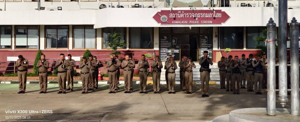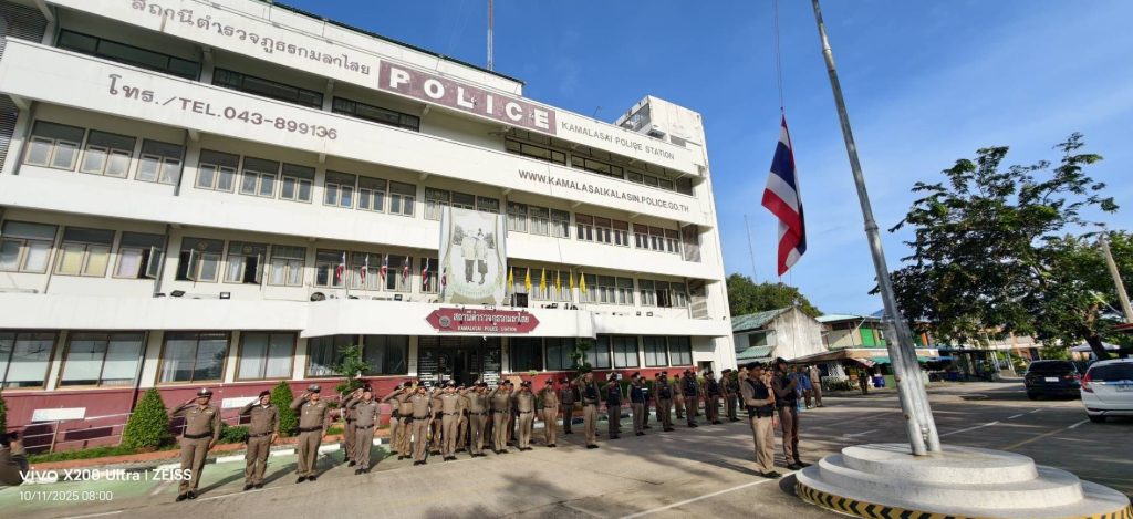 เคารพธงชาติประจำสัปดาห์ 10 พฤศจิกายน 2568 โดย kasai policeman / การปฏิบัติหน้าที่ของตำรวจ,ข่าวภารกิจผู้บังคับบัญชา,ประชาสัมพันธ์กิจกรรมของหน่วย วันที่ 10 พฤศจิกายน 2568 เวลา 08.00 น. พ.ต.อ.ขจรฤทธิ์ วงษ์ราช รอง ผบก.ภ.จว.กาฬสินธุ์ รรท.ผกก.สภ.กมลาไสย พ.ต.ท.ประพนธ์ ภูจอมนิล รอง ผกก.(สอบสวน)ฯ พ.ต.ท.ถาวร ยอดยรรยง รอง ผกก.สส.ฯ พ.ต.ท.มงคล เจียงภูเขียว สวป.ฯ พ.ต.ท.ภูษิต โคตรแสงอ่อน สว.อก.ฯ พ.ต.ต.วัชร มงคลกุล สวป.(ชส.)ฯพร้อมด้วยข้าราชการตำรวจ สภ.กมลาไสย ร่วมแสดงความเคารพธงชาติ ร้องเพลงสรรเสริญพระบารมี สวดมนต์ไหว้พระ กล่าวคำสัตย์ปฏิญาณ อุดมคติตำรวจ ตรวจการแต่งกาย ทรงผม อุปกรณ์เครื่องเเต่งกาย ชี้แจงข้อราชการต่างๆ แล้วปล่อยแถวสายตรวจออกปฏิบัติหน้าที่ต่อไป ลานหน้าที่ทำการ สภ.กมลาไสย FacebookFacebookXXLINELine