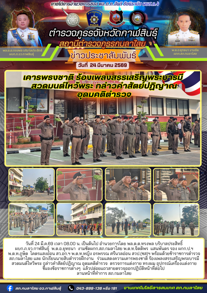 เคารพธงชาติประจำสัปดาห์ 24 มีนาคม 2569 โดย kasai policeman / การปฏิบัติหน้าที่ของตำรวจ,ข่าวภารกิจผู้บังคับบัญชา FacebookFacebookXXLINELine