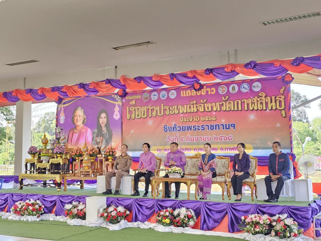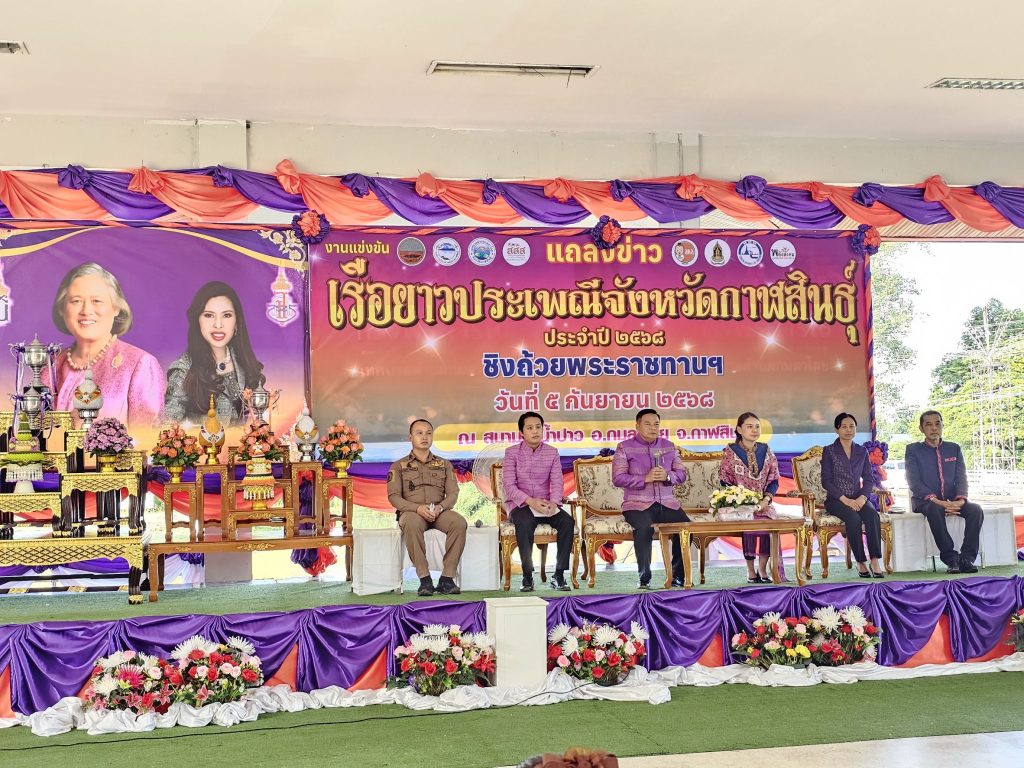 วันที่ 5 กันยายน 2568 เวลา 15.30 น. พล.ต.ต.ศิรสัณห์ เยื้อนสงวนชัย ผบก.ภ.จว.กาฬสินธุ์ พ.ต.อ.ธีรวุฒิ วงศาอ้วน ผกก.สภ.กมลาไสย มอบหมายให้ พ.ต.ท.จิตติพร แสนพันดร รอง ผกก.ป.ฯ ร่วมงานแถลงข่าว งานแข่งขันเรือยาว ประเพณีจังหวัดกาฬสินธุ์ ชิงถ้วยพระราชทาน ประจำปี 2568 โดยมี นายสนั่น พงษ์อักษร ผู้ว่าราชการจังหวัดกาฬสินธุ์ (ประธานในพิธี) นางเฉลิมขวัญ หล่อตระกูล นายก อบจ.กาฬสินธุ์ นางสาวแววดาว นระทัด นายอำเภอกมลาไสยพร้อมด้วย หัวหน้าส่วนราชการต่างๆ ผู้นำส่วนท้องถิ่น สื่อมวลชน ตลาดจนพ่อค้าประชาชน เข้าร่วมในงานแถลงข่าวในครั้งนี้ ณ สนามแข่งเรือ ลำน้ำปาว ต.กมลาไสย อ.กมลาไสย จ.กาฬสินธุ์