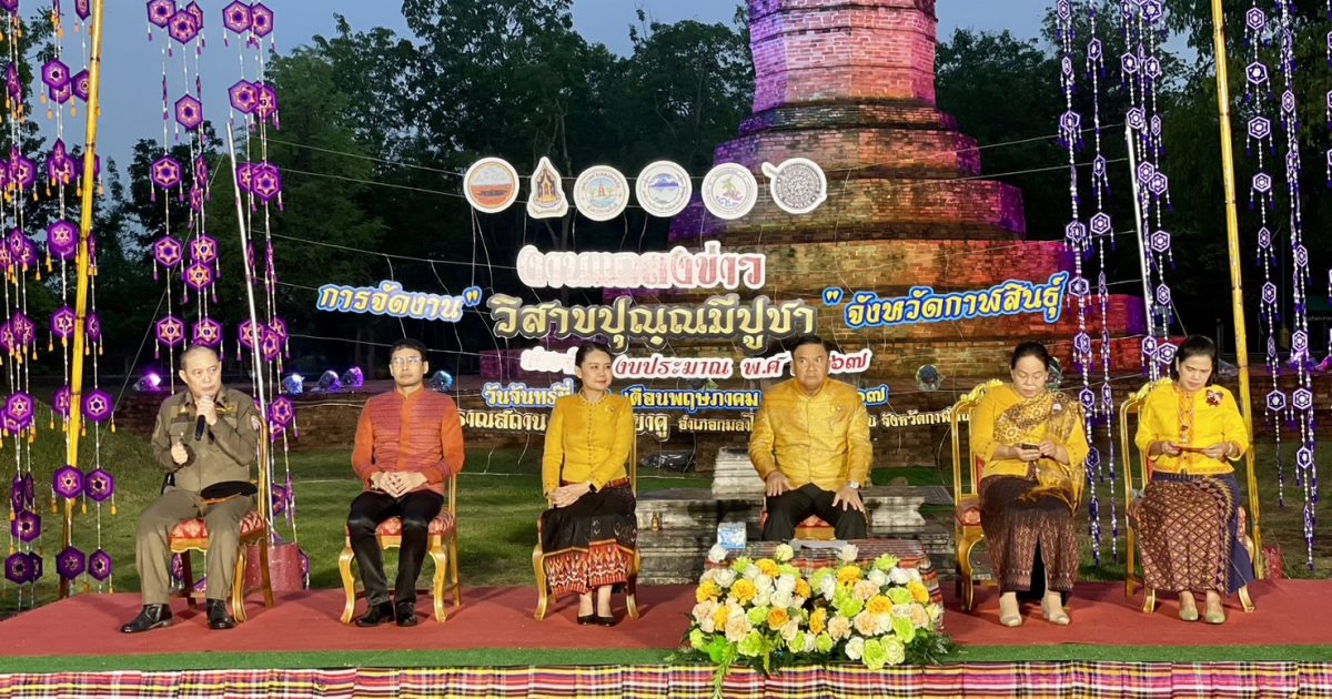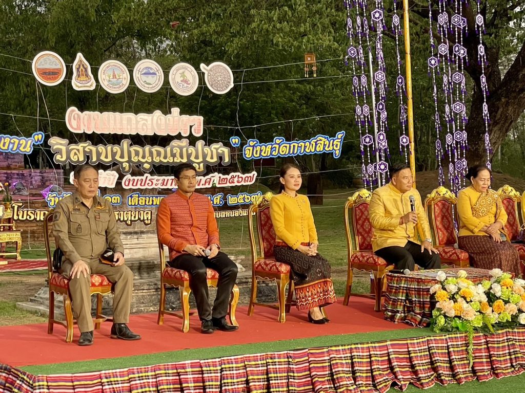 เมื่อวันที่ 13 พฤษภาคม 2567 เวลา 17.00 น. พ.ต.อ.ธีรวุฒิ วงศาอ้วน ผกก.สภ.กมลาไสย ได้รับมอบหมายจาก พล.ต.ต.ตรีวิทย์ ศรีประภา ผบก.ภ.จว.กาฬสินธุ์ ให้เข้าร่วมงานแถลงข่าว การจัดงาน “วิสาขปุณุณมีปูชา” จังหวัดกาฬสินธุ์ ประจำปี 2567 โดยมี นายสนั่น พงษ์อักษร ผู้ว่าราชการจังหวัดกาฬสินธุ์ ประธานในพิธี พร้อมคณะรองผู้ว่าราชการจังหวัดหกาฬสินธุ์ , นางเฉลิมขวัญ หล่อตระกูล นายกองค์การบริหารส่วนจังหวัดกาฬสินธุ์ , นายพุทธภูมิ นาชัยเริ่ม นายอำเภอกมลาไสย และหัวหน้าส่วนราชการต่าง ๆ ผู้นำส่วนท้องถิ่นฯ ร่วมในพิธี ณ โบราณสถานพระธาตุยาคู บ้านเสมา หมู 7 ต.หนองแปน อ.กมลาไสย จ.กาฬสินธุ์