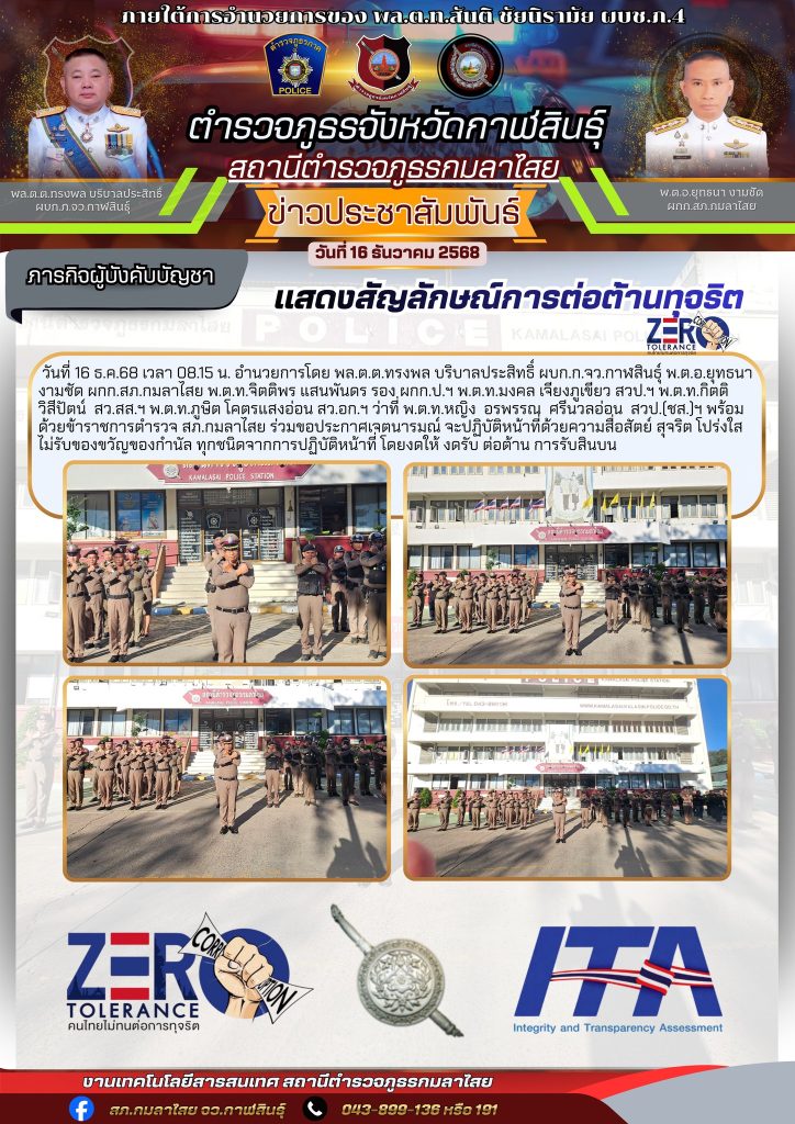 แสดงสัญญาลักาณ์การต่อต้านทุจริต ITA 16 ธันวาคม 2568 โดย kasai policeman / ประชาสัมพันธ์กิจกรรมของหน่วย,การดำเนินงาน ITA,ข่าวภารกิจผู้บังคับบัญชา FacebookFacebookXXLINELine