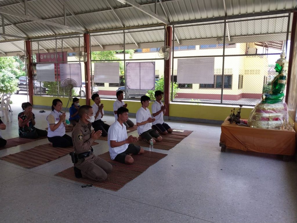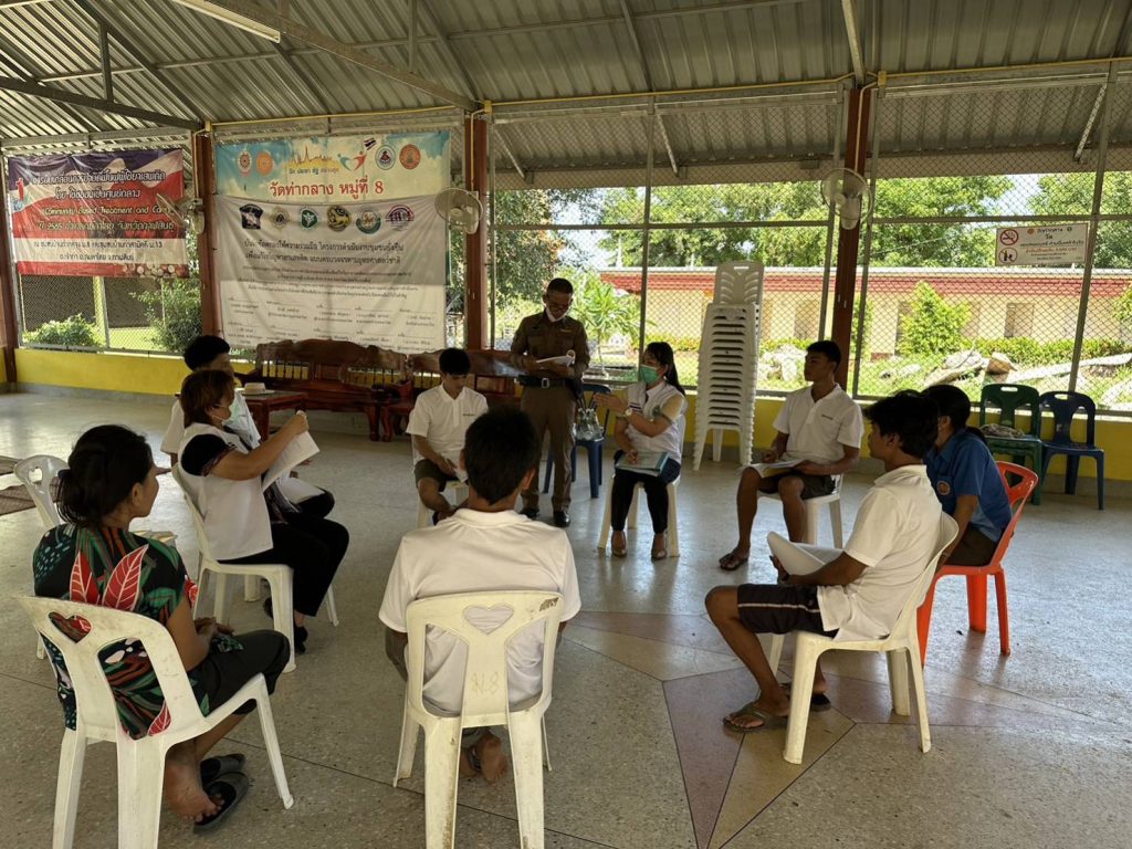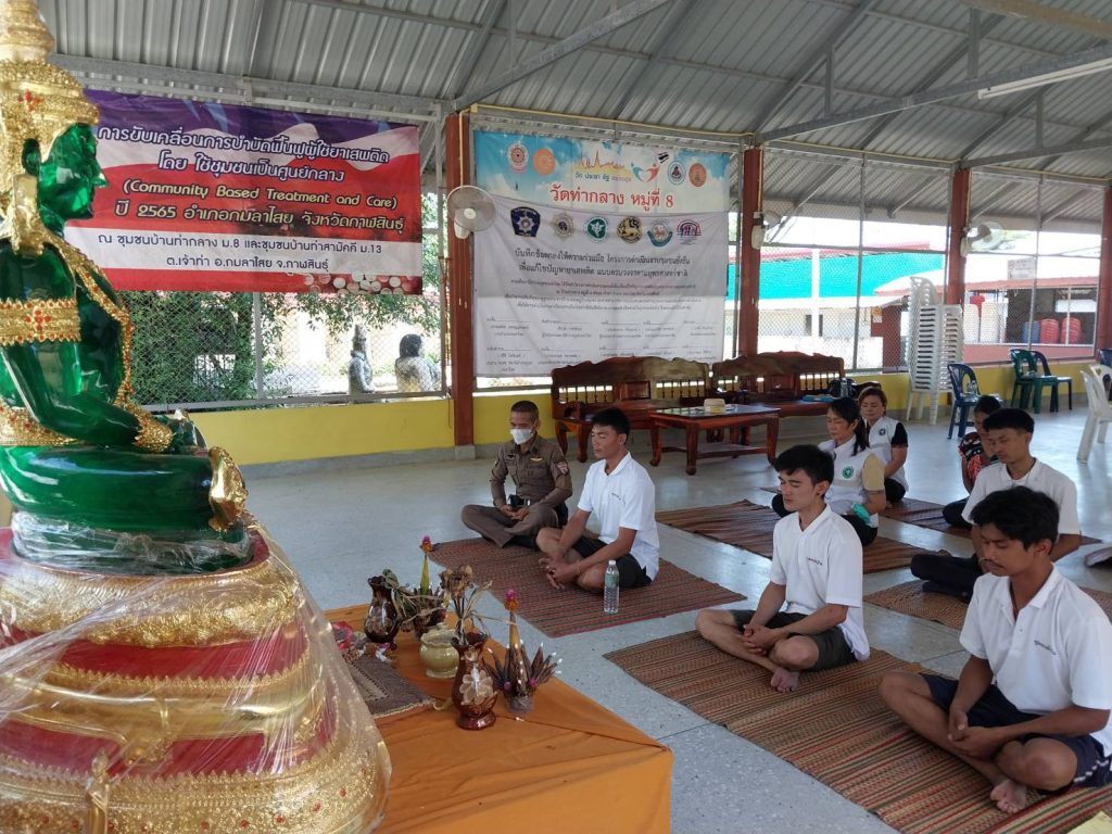 วันที่ 23 มิถุนายน 2566 เวลา 09.00-12.00 น. พ.ต.อ.ธีรวุฒิ วงศาอ้วน ผกก.สภ.กมลาไสย ผู้อำนวยการและผู้ขับเคลื่อนโครงการฯ พ.ต.ท.นครินทร์ ศรีอัครวิเนต รอง.ผกก.ป.สภ.กมลาไสย พ.ต.ท.มงคล เจียงภูเขียว สวป.สภ.กมลาไสย มอบหมายให้ ร.ต.อ.เทอดชัย ดอนไพร รอง.สวป.ฯพร้อมชุดปฏิบัติชุมชนยั่งยืน/จนท.รพ.สต.บ้านหนองบัว.ต.เจ้าท่าฯ ทำกิจกรรม CBTX /ชุมชุมบำบัด แก่กลุ่มเป้าหมาย ณ ศูนย์ปฏิบัติการชุมชนยั่งยืนฯ บ้านท่ากลาง ม.8 ต.เจ้าท่า อ.กมลาไสย จ.กาฬสินธุ์ ผลการปฏิบัติเป็นไปด้วยความเรียบร้อย