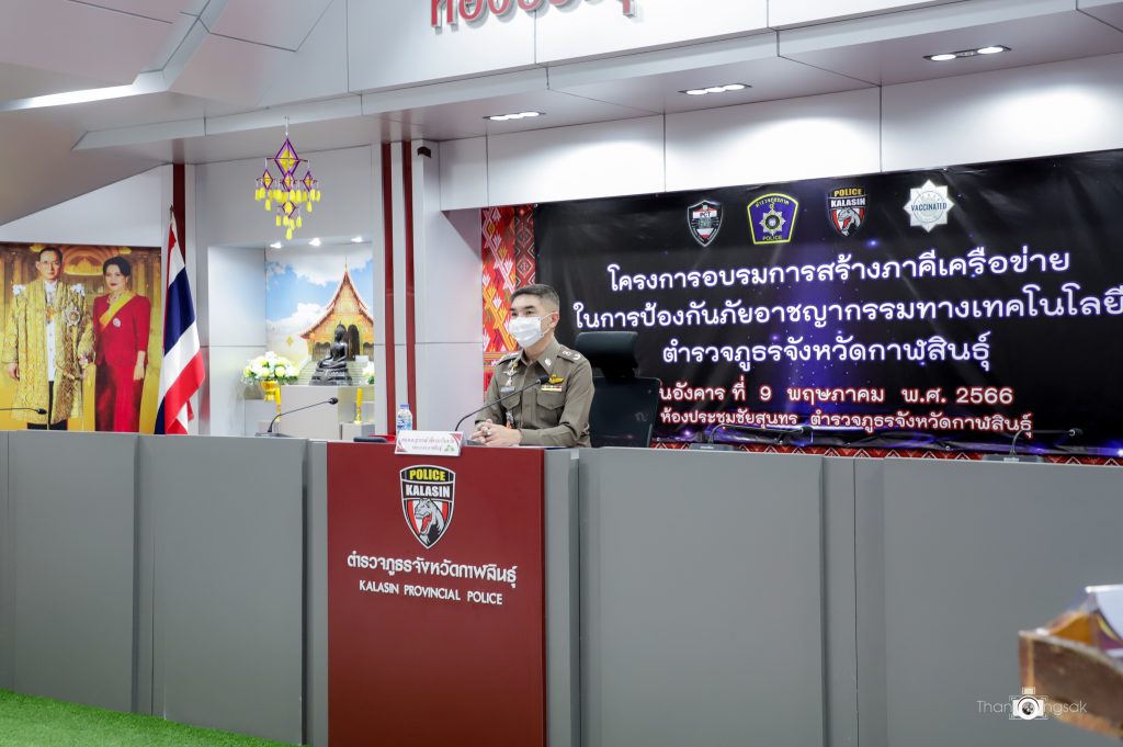 พล.ต.ต.สุวรรณ์ เชี่ยวนาวินธวัช ผบก.ภ.จว.กาฬสินธุ์ เป็นประธานในการเปิดอบรม “โครงการสร้างภาคีเครือข่ายในการป้องกันภัยอาชญากรรมทางเทคโนโลยี” ภ.จว.กาฬสินธุ์ พ.ต.อ.ชัยพร พงษ์ศักดิ์ รอง ผบก.ภ.จว.กาฬสินธุ์ กล่าวรายงานการจัดอบรมโครงการฯ คณะวิทยากร โดย พ.ต.อ.ไพโรจน์ ไทยพุทรา รอง ผบก.ภ.จว.ขอนแก่น มีภาคีเครือข่าย ข้าราชการตำรวจ และประชาชน เข้าร่วมพิธีเปิด พร้อมรับการอบรม สถานีตำรวจในสังกัดทุกสถานี ณ ห้องประชุมชัยสุนทร