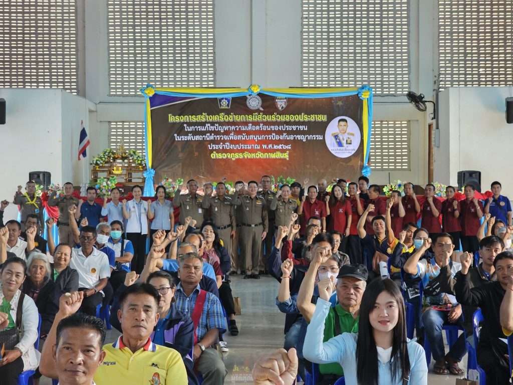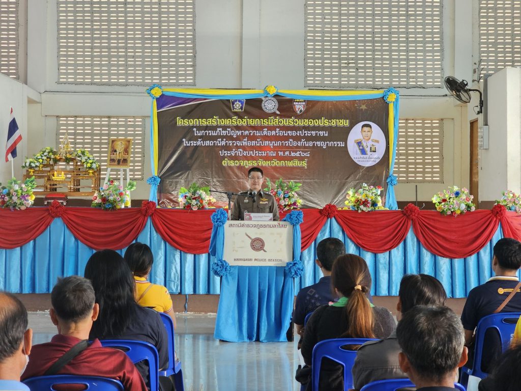 โครงการเครือข่ายการมีส่วนร่วมของประชาชน 19 กุมภาพันธ์ 2568 โดย admin / การปฏิบัติหน้าที่ของตำรวจ,ข่าวภารกิจผู้บังคับบัญชา,การปฏิบัติหน้าที่ของตำรวจ,งานป้องกันปราบปราม,งานชุมชนสัมพันธ์,การปฏิบัติหน้าที่ของตำรวจ,งานป้องกันปราบปราม วันที่ 19 กุมภาพันธ์ 2568 เวลา 09.00 น.พล.ต.ต.ศิรสัณห์ เยื้องสงวนชัย ผบก.ภ.จว.กาฬสินธุ์มอบหมายให้พ.ต.อ.สมพงศ์ มั่นหมาย รอง ผบก.ภ.จว.กาฬสินธุ์ (ประธานในพิธี)พ.ต.อ.ธีรวุฒิ วงศาอ้วน ผกก.สภ.กมลาไสยพ.ต.อ.จักรพันธุ์ จันหาญ ผกก.สภ.ร่องคำพ.ต.อ.กรภพ เนตรไธสง ผกก.สภ.ฆ้องชัยพร้อมด้วยพ.ต.ท.นครินทร์ ศรีอัครวิเนต รอง ผกก.ป.ฯพ.ต.ต.หญิง อรพรรณ ศรีนวลอ่อน สวป.(ชส.)ฯและเจ้าหน้าที่ตำรวจ สภ.กมลาไสย สภ.ร่องคำ และ สภ.ฆ้องชัย และแขกผู้มีเกียรติ เครือข่ายภาคประชาชนในพื้นที่ อ.กมลาไสย อ.ฆ้องชัย อ.ร่องคำ จำนวน 150 คน ร่วมอบรมโครงการสร้างเครือข่ายการมีส่วนร่วมของประชาชน ในการแก้ไขปัญหาความเดือดร้อนของประชาชน ในระดับสถานีตำรวจเพื่อสนับสนุนการป้องกันอาชญากรรม ประจำปีงบประมาณ พ.ศ.2568 ณ หอประชุมโรงเรียนอนุบาลเทศบาลกมลาไสย ต.กมลาไสย อ.กมลาไสย จ.กาฬสินธุ์ FacebookFacebookXXLINELine