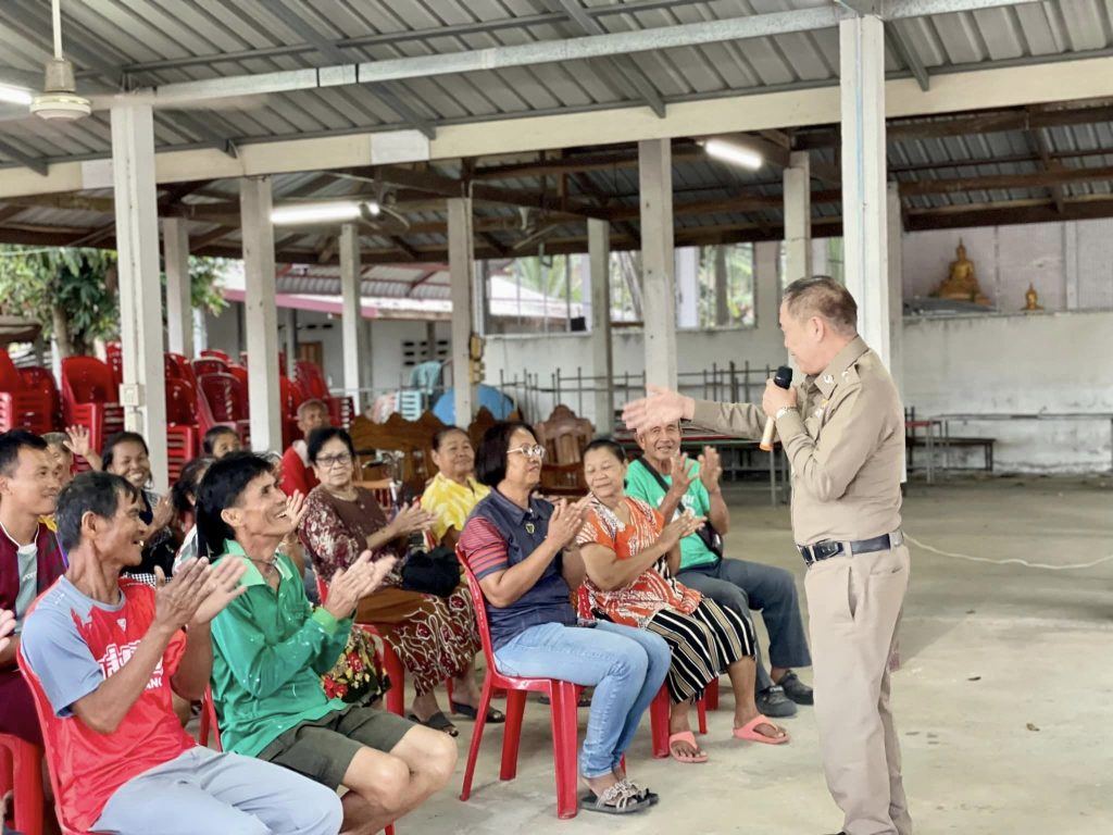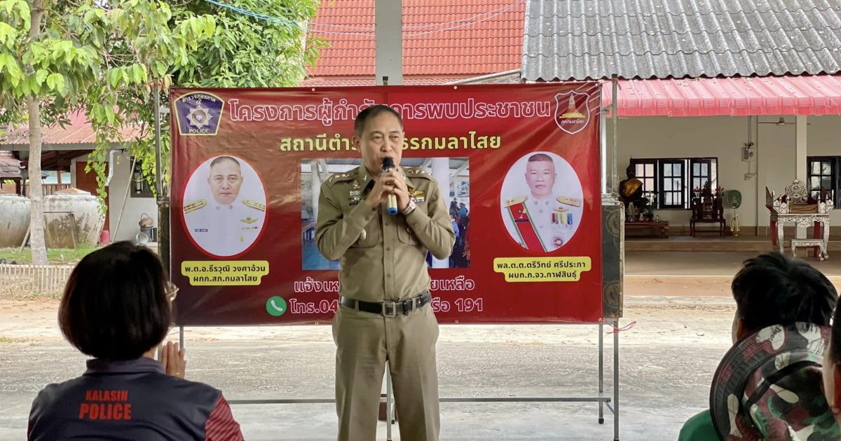 โครงการ ผกก.พบประชาชน 16 พฤศจิกายน 2566 โดย admin / การปฏิบัติหน้าที่ของตำรวจ,ข่าวภารกิจผู้บังคับบัญชา,ประชาสัมพันธ์กิจกรรมของหน่วย วันที่ 15 พฤศจิกายน 2566 เวลา 17.00 น. พ.ต.อ.ธีรวุฒิ วงศาอ้วนผกก.สภ.กมลาไสย พร้อมด้วย พ.ต.ท.นครินทร์ ศรีอครวิเนต รอง ผกก.ป.สภ.กมลาไสย พ.ต.ท.มงคล เจียงภูเจียว สวป.สภ.กมลาไสย ร.ต.อ.เทอดชัย ดอนไพร รอง สวป.สภ.กมลาไสย ได้ออกพบปะประชาชนตาม”โครงการผู้กำกับการพบประชาชน” ตามนโยบายของผบก.ภ.จว.กาฬสินธุ์ และได้บรรยายให้ความรู้ ดังนี้ 1)ให้ความรู้ เรื่องกลโกงออนไลน์ ในรูปแบบต่างๆ 2) เรื่องปัญหายาเสพติดในชุมชน 3)การขับรถปลอดภัยและขับรถเสียงดังในหมู่บ้าน 4)เปิดรับทราบปัญหาของพี่น้องประชาชนในหมู่บ้านให้ชาวบ้านเสนอต่อตำรวจ ณ ศาลาประชาคมบ้านโคกล่าม ม.2 และ ม.16 ต.ดงลิง อ.กมลาไสยจว.กาฬสินธุ์ FacebookFacebookXXLINELine