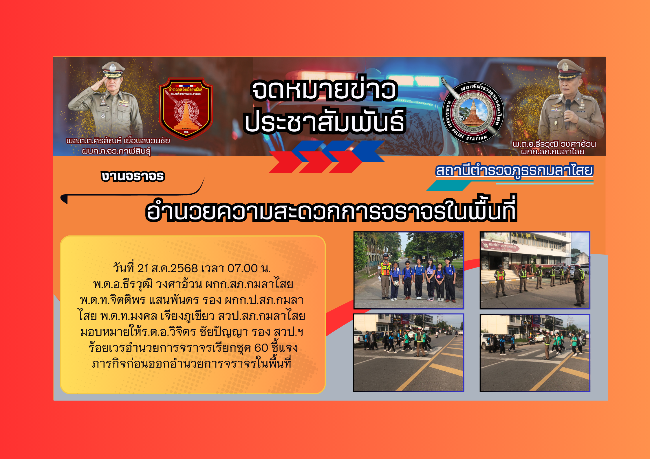 วันที่ 19 สิงหาคม 2568 เวลา 08.30 น. พ.ต.อ.ธีรวุฒิ วงศาอ้วน ผกก.สภ.กมลาไสย มอบหมายให้ พ.ต.ท.ป