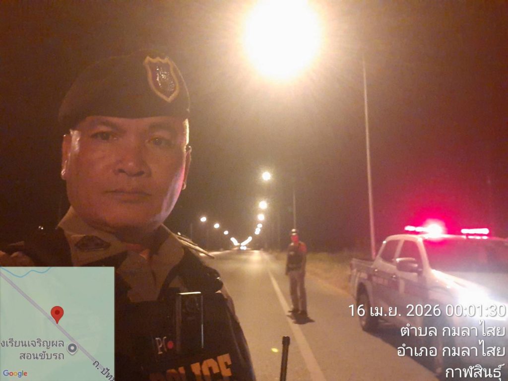 เมื่อวันที่ 16 เมษายน 2569 ระหว่างเวลา 00.01 – 02.04 น. ภายใต้อำนวยการของ พ.ต.อ.ยุทธนา งามชัด ผกก.สภ.กมลาไสย , พ.ต.ท.จิตติพร แสนพันดร รอง ผกก.ป.สภ.กมลาไสย และ พ.ต.ท.มงคล เจียงภูเขียว สวป.สภ.กมลาไสย ได้มอบหมายให้ ร.ต.อ.สำฤทธิ์ ภูปรางค์ รอง สว.(ป.) สภ.กมลาไสย ปฏิบัติหน้าที่ร้อยเวร 2-0 พร้อมด้วยเจ้าหน้าที่สายตรวจรถยนต์ ออกปฏิบัติหน้าที่ตรวจตรารักษาความสงบเรียบร้อย ความปลอดภัยในชีวิตและทรัพย์สินของประชาชน เพื่อป้องกันการกระทำความผิดตามมาตรการและขับเคลื่อนโครงการป้องกันการแข่งรถในทาง ซึ่งอาจจะก่อให้เกิดอุบัติเหตุทางถนนสายกาฬสินธุ์-ร้อยเอ็ด (ทางหลวงแผ่นดินหมายเลข 214) ระหว่างบ้านฟากปาวไปถึงเขตรอยต่อกับพื้นที่ สภ.เมืองกาฬสินธุ์ ในระหว่างตรวจตราไม่พบการกระทำดังกล่าวแต่อย่างใด และได้ออกตรวจตราในพื้นที่ต่อไป