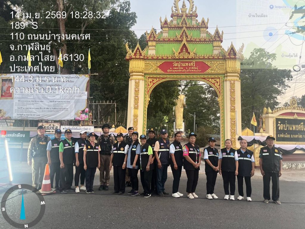 เมื่อวันที่ 14 เมษายน 2569 พ.ต.อ.ยุทธนา งามชัด ผกก.สภ.กมลาไสย , พ.ต.ท.จิตติพร แสนพันดร รอง ผกก.ป.สภ.กมลาไสย และ พ.ต.ท.มงคล เจียงภูเขียว สวป.สภ.กมลาไสย ได้มอบหมายให้ ร.ต.อ.สำฤทธิ์ ภูปรางค์ รอง สว.(ป.) สภ.กมลาไสย ปฏิบัติหน้าที่ร้อยเวร 2-0 (กไสย 222) พร้อมด้วยเจ้าหน้าที่สายตรวจรถยนต์ ร่วมปฏิบัติการรักษาความสงบเรียบร้อยและดูแลความปลอดภัยร่วมกับผู้นำชุมชน ชุดอาสาสมัครรักษาความสงบเรียบร้อยประจำหมู่บ้าน บ้านคุ้มใต้ หมู่ 2 ตำบลหลักเมือง ในการตั้งจุดตรวจจุดบริการบริเวณสามแยกวัดป่าแพงศรีเมือง ตำบลหลักเมือง อำเภอกมลาไสย จังหวัดกาฬสินธุ์ ในการป้องกันเหตุ ห้วงเทศกาลประเพณีสงกรานต์ 2569 เป็นไปด้วยความเรียบร้อยไม่มีเหตุการณ์เหตุร้ายแต่อย่างใด