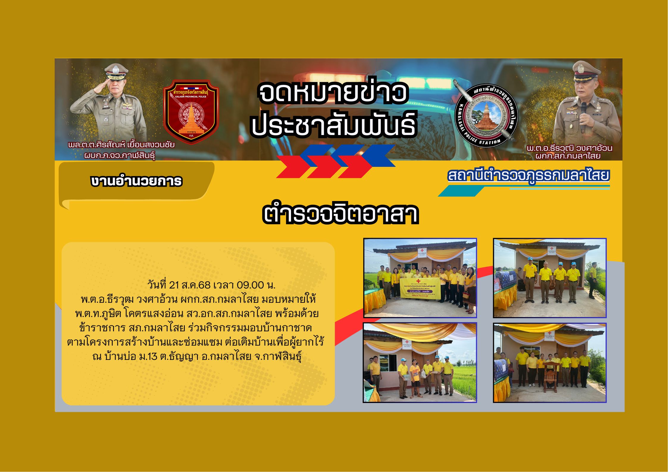 วันที่ 21 ส.ค.68 เวลา 09.00 น. 🎖️พ.ต.อ.ธีรวุฒ วงศาอ้วน ผกก.สภ.กมลาไสย มอบหมายให้ 🎖️พ.ต.ท.ภูษิต โคตรแ