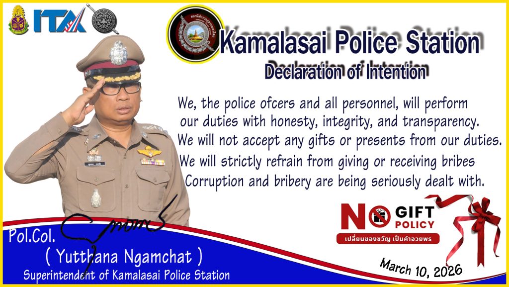 O14 ประกาศนโยบายต่อต้านการรับสินบนและการมีส่วนร่วมของหัวหน้าสถานีตำรวจ