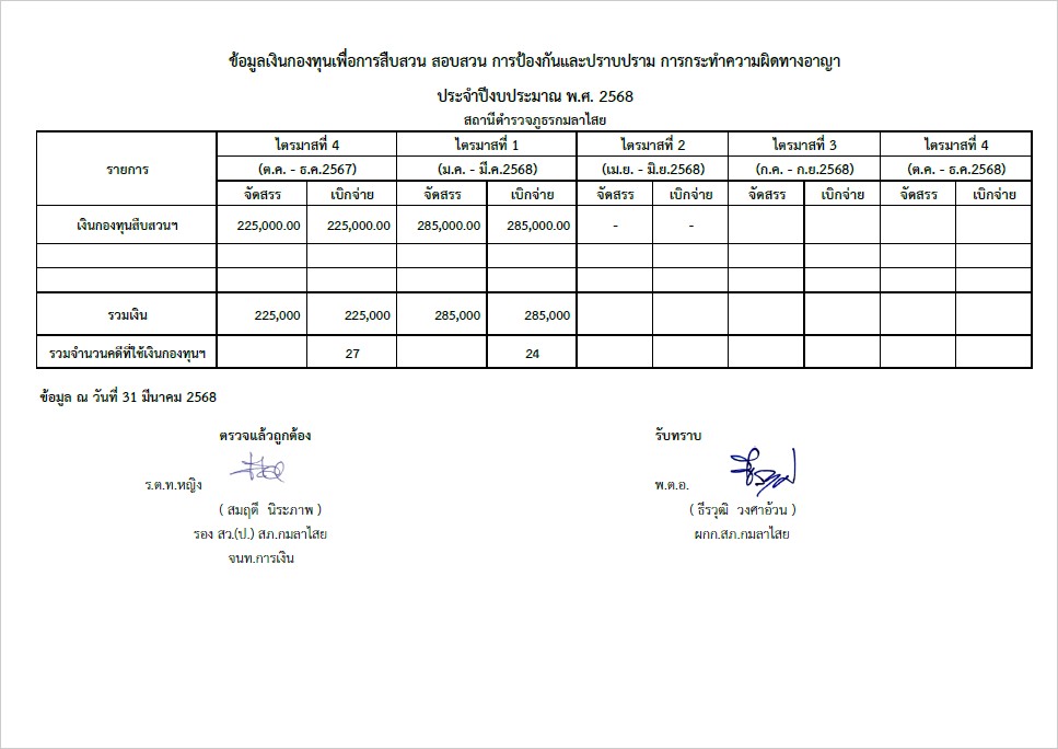 ข้อมูลเงินกองทุนเพื่อการสืบสวนสอบสวนคดีอาญา