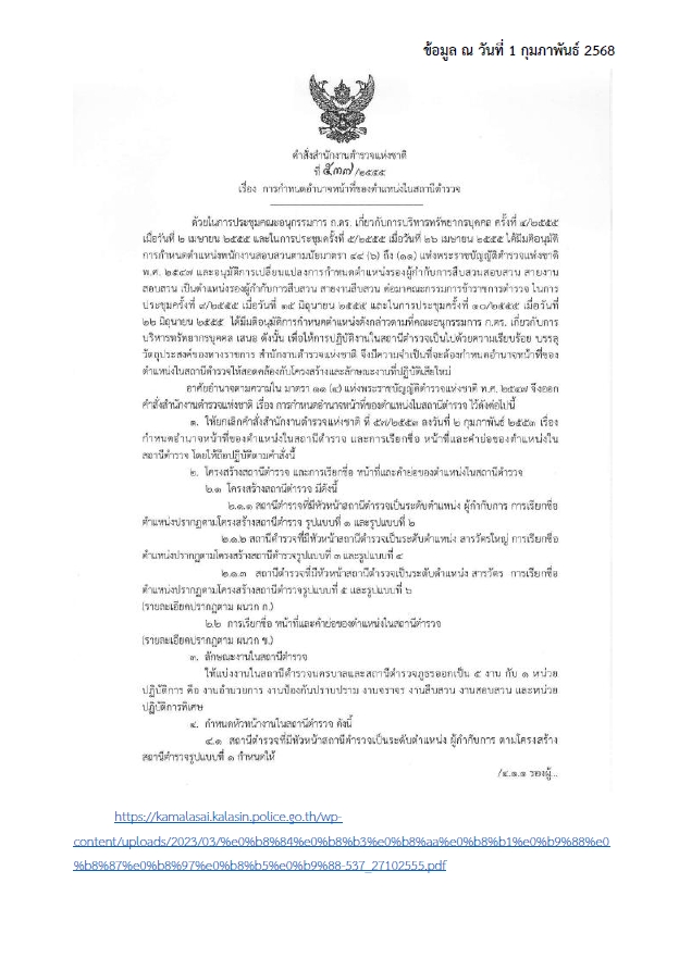 โครงสร้างและอำนาจหน้าที่ สถานีตำรวจภูธรกมลาไสย