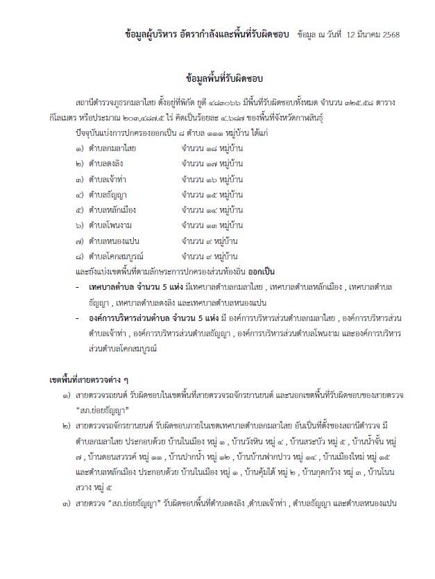ข้อมูลผู้บริหาร อัตรากำลังและพื้นที่รับผิดชอบ