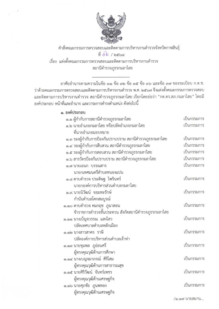 คณะกรรมการ กต.ตร.สภ.กมลาไสย โดยตำแหน่ง
