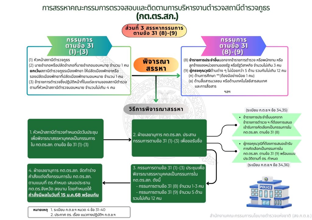 ตามระเบียบ ก.ต.ช. ว่าด้วยคณะกรรมการตรวจสอบและติดตามการบริหารงานตำรวจ พ.ศ.2567 ประกาศเมื่อวันที่ 19 กันยายน 2567 หมวด 4 ข้อ 41 ให้ กต.ตร.สภ. มีหน้าที่และอำนาจ ดังต่อไปนี้