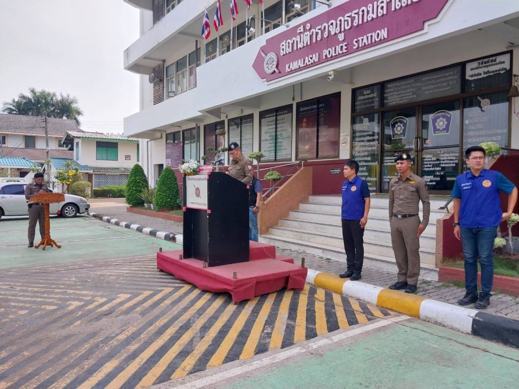 เมื่อวันที่ 29 มีนาคม 2567 เวลา 15.00 น. พ.ต.อ.ธีรวุฒิ วงศาอ้วน ผกก.สภ.กมลาไสย ได้เป็นประธานในการปล่อยแถวสายตรวจ ระดมกวาดล้างปราบปรามอาชญากรรมในห้วงเทศกาลสงกรานต์ปี 2567 โดยมีเจ้าหน้าที่ฝ่ายปกครองอำเภอกมลาไสย ตัวแทนชุดอาสาสมัครรักษาความปลอดภัยหมู่บ้าน อาสาหน่วยกู้ภัยในพื้นที่ และข้าราชการตำรวจในสังกัด สภ.กมลาไสย เข้าร่วมปฏิบัติ ณ บริเวณด้านหน้าอาคารที่ทำการสถานีตำรวจภูธรกมลาไสย เพื่อเป็นการบูรณราการร่วมกัยหลายภาคส่วน ได้มีส่วนร่วมในการปฏิบัติต่อไป โดยมี พ.ต.ท.นครินทร์ ศรีอัครวิเนต รอง ผกก.ป.ฯ , พ.ต.ท.ถาวร ยอดยรรยง รอง ผกก.สส.ฯ , พ.ต.ท.มงคล เจียงภูเขียว สวป.ฯ , พ.ต.ท.ภูษิต โคตรแสงอ่อน สว.อก.ฯ , พ.ต.ต.อมร เดชศรี สว.สส.ฯ และปลัดอำเภอกมลาไสย เข้าร่วม